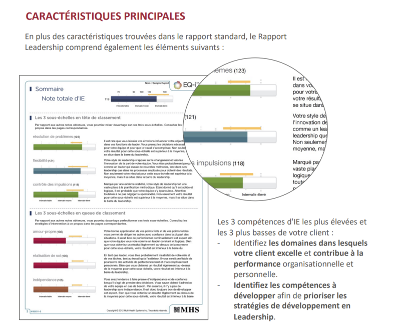Le rapport EQi existe en version classique, en version 360, permettant d'avoir la perception des personnes qui vous entourent et en version Leadership pour toutes les personnes ayant des postes à responsabilité et avec du management.